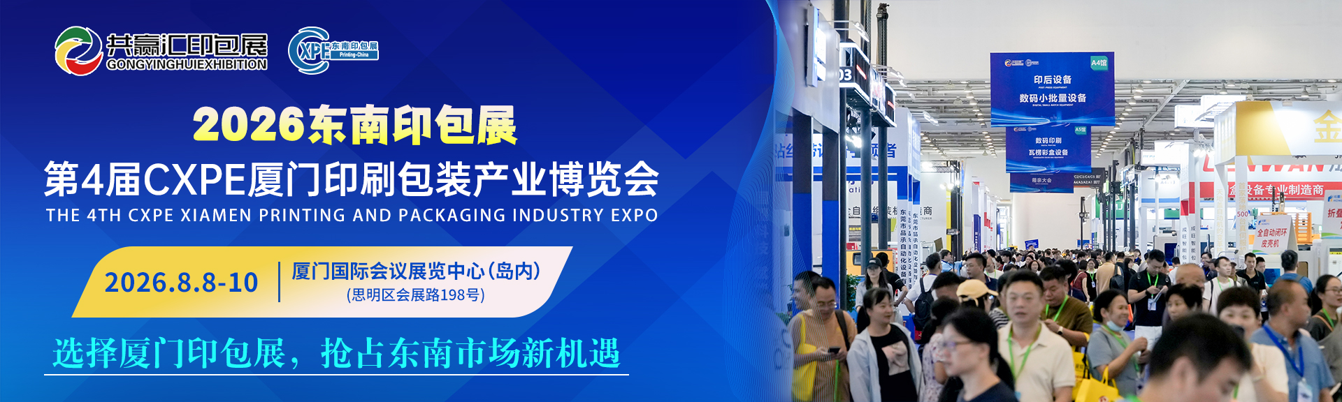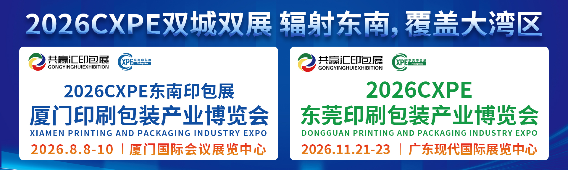 CXPE共赢汇印包展--2025厦门印刷包装产业博览会将于9月21日-23日在厦门国际会议展览中心(思明区会展路198号)举办。本届展会致力于推动印刷包装产业的发展。依托厦门独特的自由贸易试验区优势,深化国内外印刷包装产业交流与合作,打造国内优质的印刷包装全产业链贸易平台。现场展示各类印刷设备、瓦楞纸箱设备、数码印刷设备、印后加工设备、包装设备、